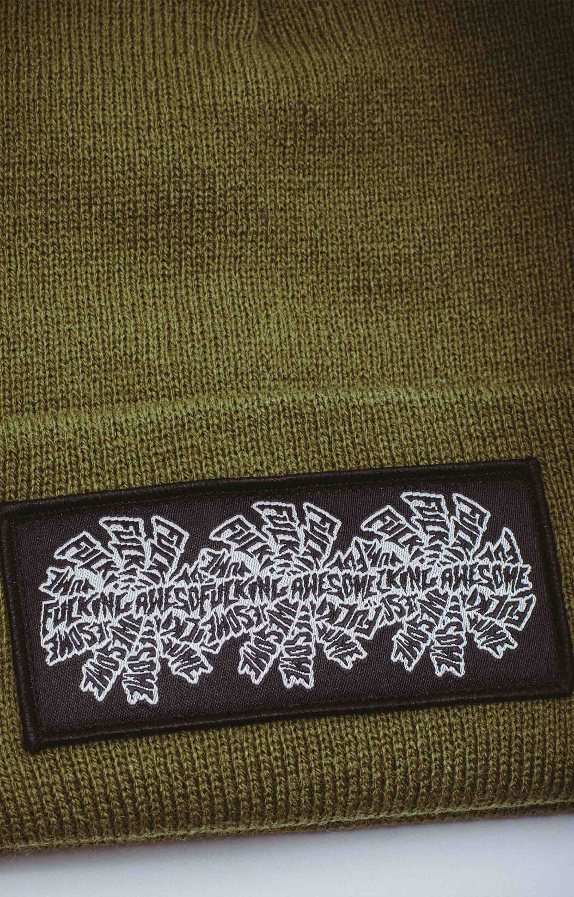 Fucking Awesome Three Spiral Edge Stitch Beanie, Winter Moss